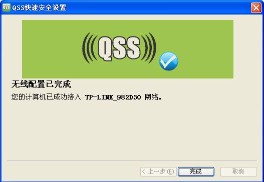5. 出现下面图示则表示QSS设置连接成功,单击完成。