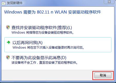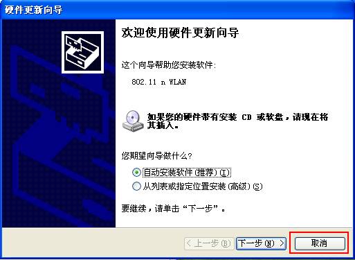 当网卡接上电脑以后,系统会自动弹出硬件安装向导来安装网卡驱动: