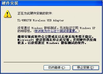 如果在安装过程中出现了关于Windows徽标测试的对话框:
