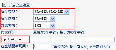 例如:在“TP-LINK_FAE”这个无线路由器上,无线安全的设置是: