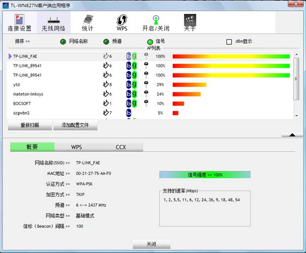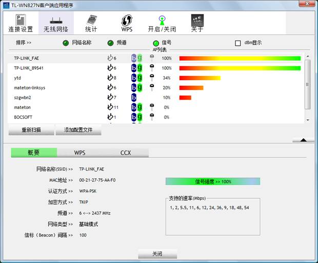 4) 安装结束后会自动弹出TL-WN827N客户端应用程序,如下图。