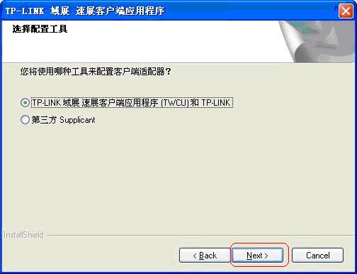 7) 选择配置工具,我们建议您保持默认,选择我司应用程序,否则可能导致网卡的一些功能不能正常使用。点击Next。