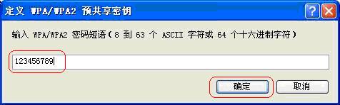 7) 由于前端无线路由器是WPA-PSK加密方式,因此我们在网卡中选择WPA/WPA2密码短语,点击配置按钮后,输入路由器中的PSK密码,点击确定。