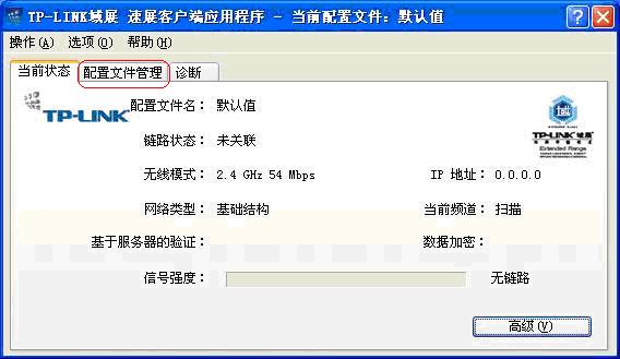 6) 要在无线网卡中进行加密设置,点击配置文件管理中的安全选项。