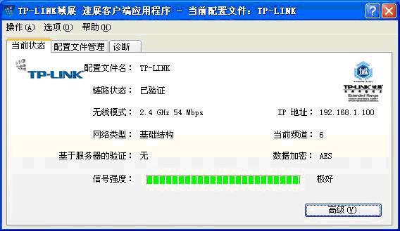 4) 从上图无线网卡搜索到的无线信号可以看出,网络名称“TP-LINK_FAE”后有一把钥匙,这说明该无线信号是一个加密的无线信号。要与该信号进行连接,首先要知道该无线信号的加密设置。因此我们需要到前端无线路由器中确认加密方式及加密密钥。