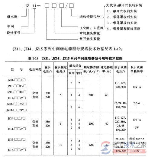四、JZll、JZl4、JZl5系列中间继电器