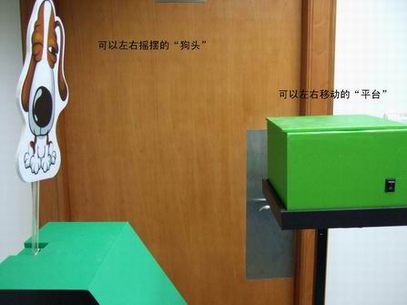 下面让我们选择一款价格相当、并带有防抖功能的其他品牌相机(以下简称A)与富士F30做比较,在相同的日光灯环境下,采用了如下道具,左边是可以摇摆的“狗头”,右边是可以移动的“平台”,在摇动的频率相同情况下,我做了以下三种情况测试: