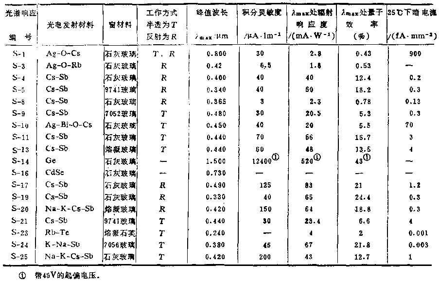 常规光电阴极:用于常用真空光电器件中。根据国际电子工业协会规定,按其出现的先后顺序,以S为字头排成序号。