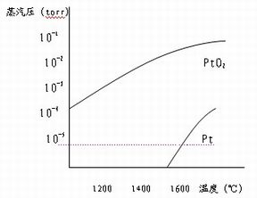 研究证明,Pt在高温下的挥发损失大部分由PtO2造成。PtO2及Pt的蒸汽压曲线见图1,