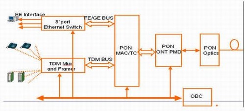 ●多业务的适配和成帧技术:对于GPON网络要求对于多业务提供统一的接入平台,规定了对ATM,TDM和Ethernet业务的数据封装格式,同时为了保证TDM业务的QoS,系统要求保证125us的帧长。开发具有自主知识产权的全硬件适配和成帧模块将是GPON技术研究的第一个技术难点。对于EPON技术,标准中并没有提及多业务的承载问题,但是对于全业务的接入网必然要求兼容目前已有的其他业务,最关键的问题是如何在EPON基础上提供具备QoS保证的TDM传输。