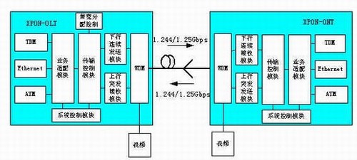 无源光网络(PON)技术是最新发展的点到多点的光纤接入技术。无源光网络由光线路终端(OLT)、光网络单元(ONU)和光分配网络(ODN)组成。一般其下行采用TDM广播方式、上行采用TDMA(时分多址接入)方式,而且可以灵活地组成树型、星型、总线型等拓扑结构(典型结构为树形结构),PON的本质特征就是ODN全部由无源光器件组成,不包含任何有源电子器件。这样避免了外部设备的电磁干扰和雷电影响,减少了线路和外部设备的故障率,简化了供电配置和网管复杂度,提高了系统可靠性,同时节省了维护成本,是电信维护部门长期期待的技术,越来越受到业界的关注和重视,发展非常迅猛。与点到点的有源光网络相比,PON技术的主要特点在于维护简单,成本较低(节省光纤和光接口)和较高的传输带宽,其高性能价格比的特点会使其在很长时间内保持竞争优势,PON一直视被为接入网未来的发展方向。