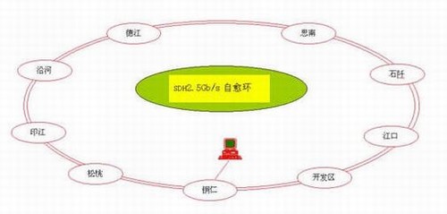 ·一个155Mb/s SDH链路、一个155Mb/s SDH自愈环、一个622Mb/s SDH自愈环,两环一链的