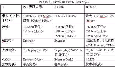一、EPON、GPON和P2P技术比较