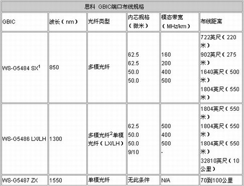 一般来说,不同的产品搭配的GBIC模块端口对布线规格的要求都各有不同,不管是布线类型还是布线距离,下面以思科的产品为例进行分析: