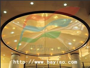 巴艺软膜天花有六种系列:光面,缎光面,透光面,基本膜,绒面,金属面和冲孔面。有上百种色彩可供选择,多种类型供设计师选择。适合各种场合的要求。突破了传统天花的局限性。