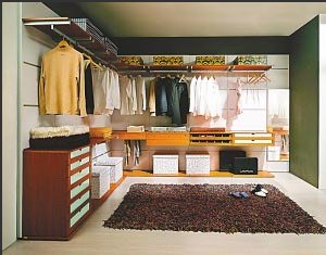 挂墙板式衣帽间 风格解析:前卫时尚 挂墙板式衣帽间设计前卫时尚,放置物品的隔板可以直接安插在背板上,方便拆卸并调整位置,展示性最强,多用于与门厅、卫生间相连的存放衣物不多的衣帽间,简单、一目了然。适合偏爱简洁空间的人。